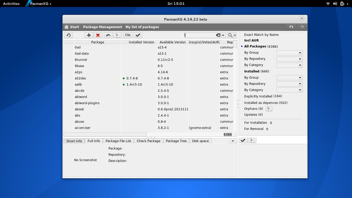 PacmanXG je u beta fazi, a prilikom otvaranja programa upozorava na greške za yaourt i problem provjere mirrora, kao i na problem s lokalizacijom. Yaourt moramo instalirati, no za ostale probleme – koji ne utječu na rad programa – nisam našao rješenje.