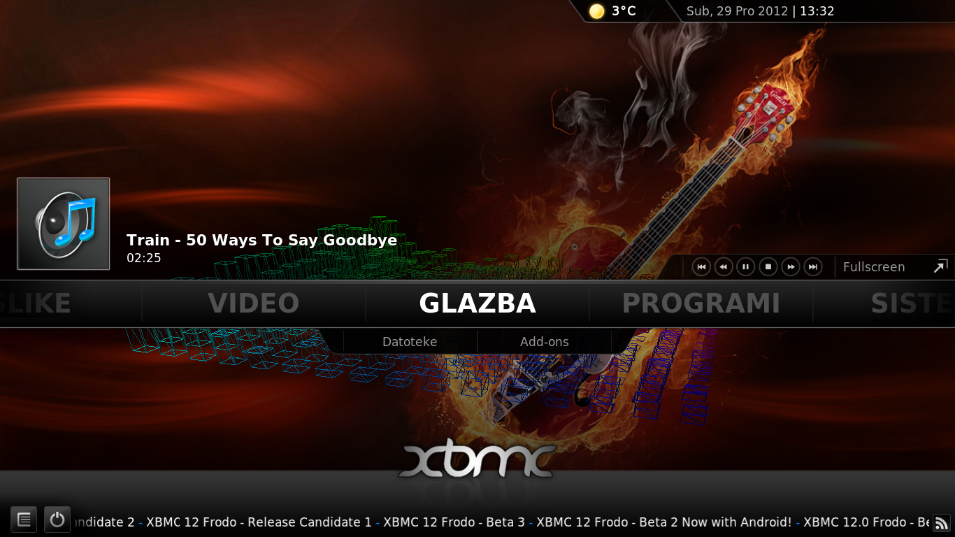 Do sada sam koristio radiotray za slušanje radija. Sad vidim da će radio ostati u trayu kao zlatna rezerva jer koristim XBMC za slušanje radija. Omiljena “Antena Zagreb” već svira. Upravo Bob Marley pjeva moj omiljeni sentiš “No woman no cry”.