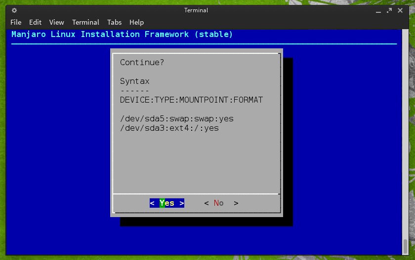 Nažalost, ovaj instaler nije namijenjen početnicima. Odabir particija za instalaciju je prilično težak i zahtijeva određeno znanje o Linux particijama i postavljanju sustava. Iako je tijekom instalacije moguće kreiranje particija pomoću CLI alata cfdisk, ipak savjetujem pripremu particija u nekom jednostavnijem alatu tipa Gparted. Moram priznati da sam se nekoliko puta morao vraćati u prethodne korake da bih “pohvatao” sve što mi treba i završio taj korak.