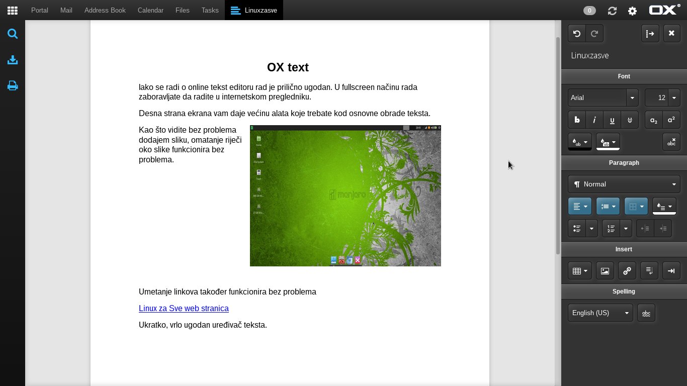 Mail, kalendar i adresar u OX App Suitu neću posebno spominjati. Vjerujem da vam je jasno kako se koriste. Prilažem samo izgled njihovog sučelja.