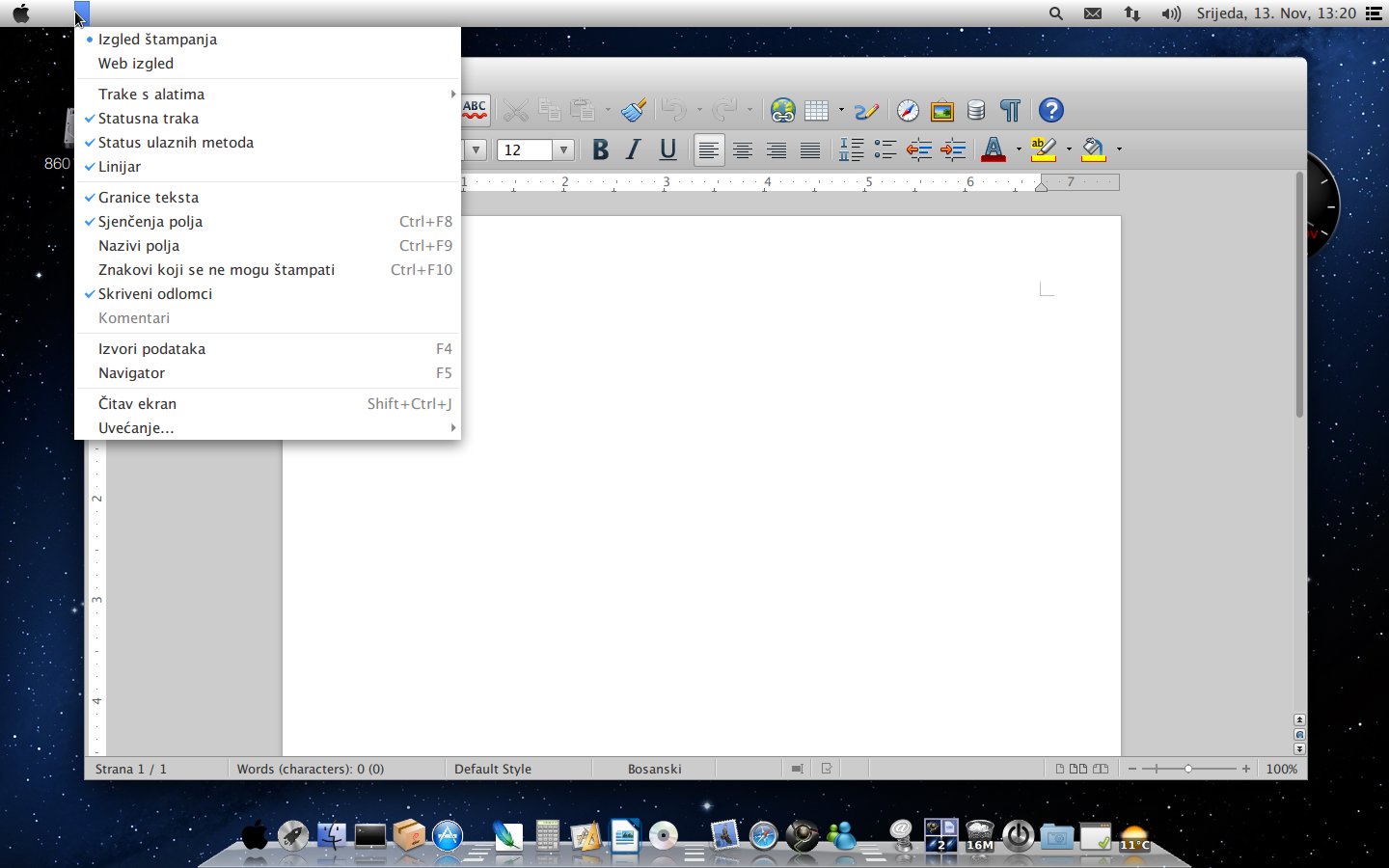 Da ne bi sve bilo lijepo i savršeno, red je da spomenem i onu drugu stranu, ali ovaj put neće biti puno toga za reći. Naime, uočio sam neke sitne greške, ali nije ništa strašno; kod pokretanja Libre Officea na panelu se ne ispisuju alati za rad nego se klikom na panel pojavi crtica i ispod nje se otvori traka menija s dostupnim alatkama vezanim za tu funkciju. Pomalo nezgodno i zbunjujuće dok se ne naviknete. Također, pojedine tipkovničke kratice koje sam postavio za pokretanje upravitelja datotekama i sl. ponekad uopće ne reagiraju. Isto tako, prilikom promijene wallpapera nije moguće dodati sliku po vlastitom izboru. Ne znam je li to bug ili feature (kod OS X-a bi zasigurno bio feature). Za ovaj problem sam potražio rješenje na njihovom forumu, te za sad predlažu zaobilazni put, tj. da željenu sliku wallpapera otvorite u Firefoxu ili u nekom programu za pregled slika i odatle je postavite kao pozadinu.